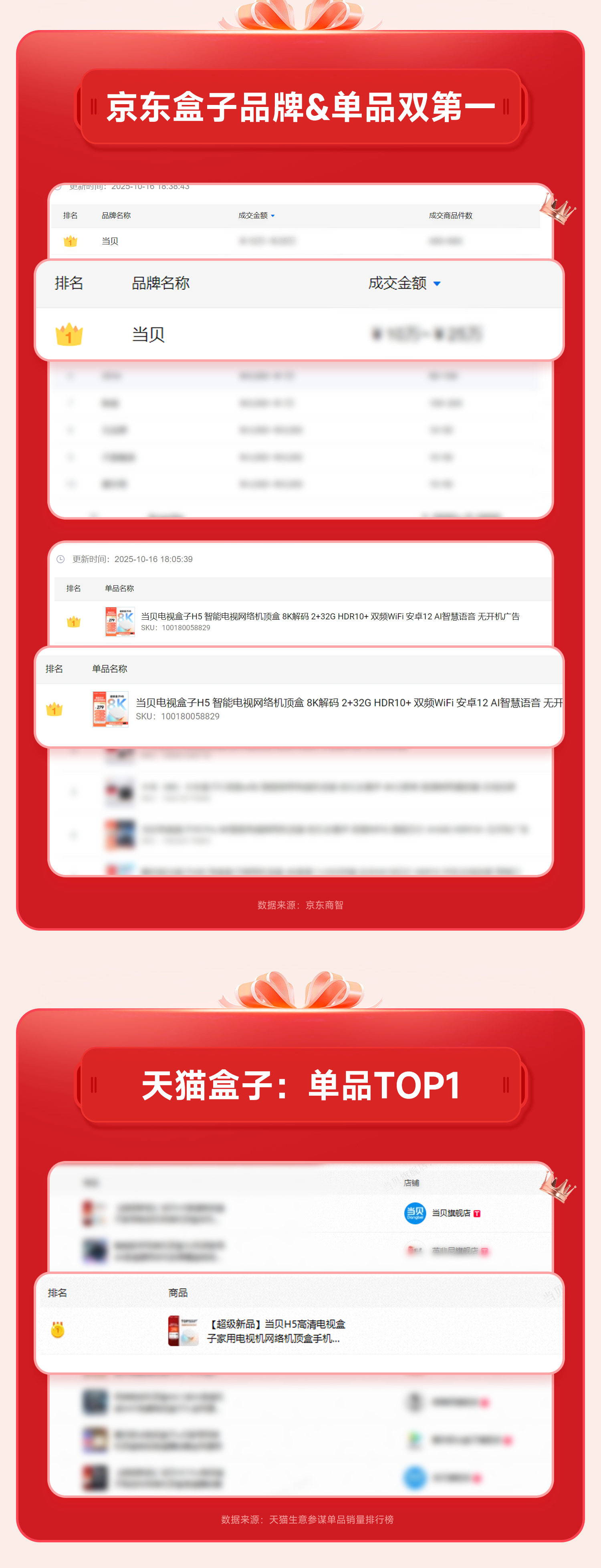 正文摘要:最近雙十一的電視盒子市場可以說是風起云涌,各大品牌都在暗暗發(fā)力,排名競爭異常激烈。就在10月16日,最新的電視盒子銷售戰(zhàn)報新鮮出爐,國貨品牌當貝表現(xiàn)極其亮眼,可以說是再下一城,強勢包攬了多個平臺的冠軍寶座 ... |